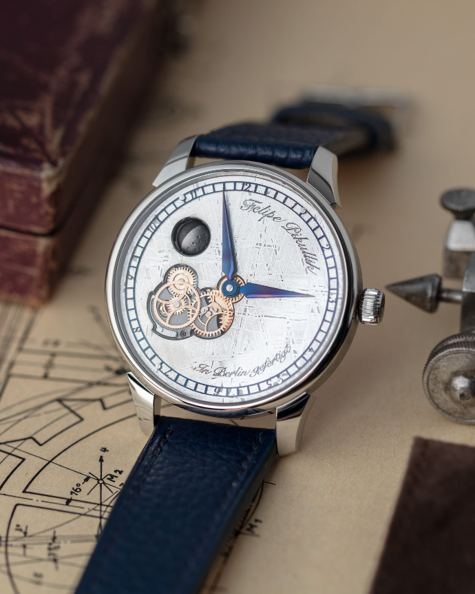 A dial carved from solid meteorite. Forged in space, finished by hand.