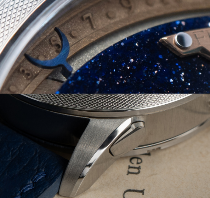 At the heart of the Sternenhimmel Blue lies the hand crafted balance wheel, a defining element of the watch.